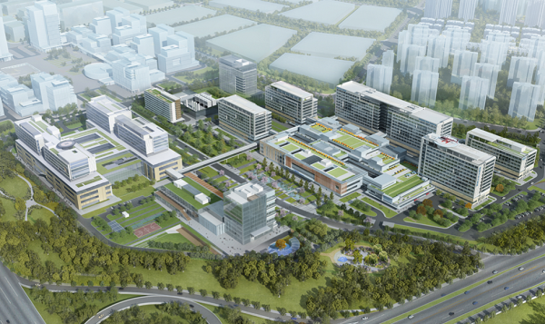 醫(yī)院建筑由美國設(shè)計公司按照國際理念結(jié)合中國國情設(shè)計, 采用庭院式布局,著力營造自然療愈空間,采用大面積采光使室內(nèi)外環(huán)境渾然一體。醫(yī)院設(shè)置醫(yī)學(xué)轉(zhuǎn)化中心、模擬訓(xùn)練中心、進(jìn)修實習(xí)樓、學(xué)術(shù)報告廳、遠(yuǎn)程教學(xué)中心,在門診和病區(qū)設(shè)置數(shù)字化MDT中心;配套建設(shè)人才公寓,設(shè)置員工活動中心和室內(nèi)外運(yùn)動場,為醫(yī)務(wù)人員創(chuàng)造安全舒適的工作、生活環(huán)境。